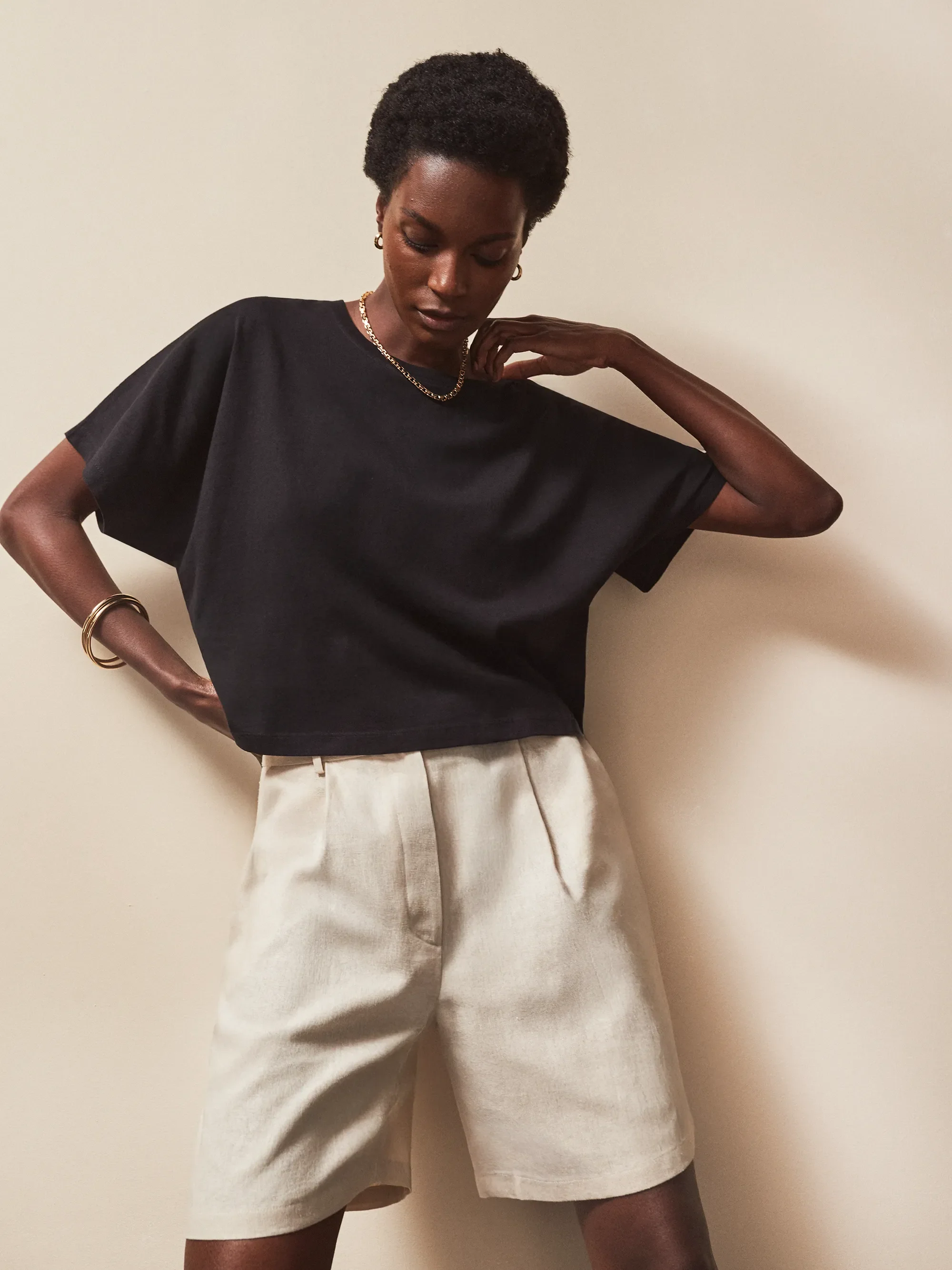 The search for the perfect boxy T-shirt is over. This short-sleeved, round-neck tee is made from black organic cotton to a relaxed fit, with a slightly cropped length that’s perfect with high-waist jeans or trousers. We’ve also made it in white – because you can never have too many beautifully crafted tees.